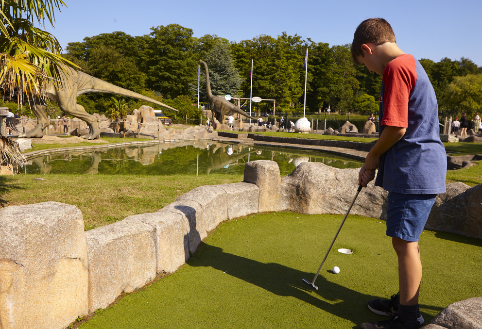 Whether you happen to be an expert golfer or have never held a putter before, try not to be distracted by the Stegosaurus in the crowd as months of gloating could be yours by sinking that winning putt on the 18th green.